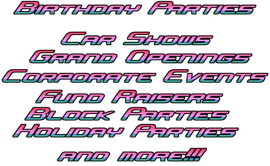 WE ALSO DO STREET FAIRS, FUND RAISERS, CAR SHOWS, GRAND OPENINGS AND MORE.